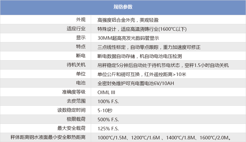 專為冶金、鑄造行業度身設計,適用于高溫環境。它在原有普通秤體的基礎上作了專門的設計與改進。以保證在高溫環境下能獲得較好的準確性。
